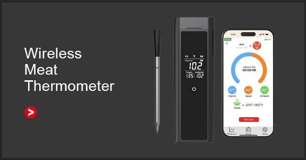 Productos principales:Termómetro digital para carne, termo higrómetro interior, termómetro para nevera, temporizador digital, termómetro inalámbrico